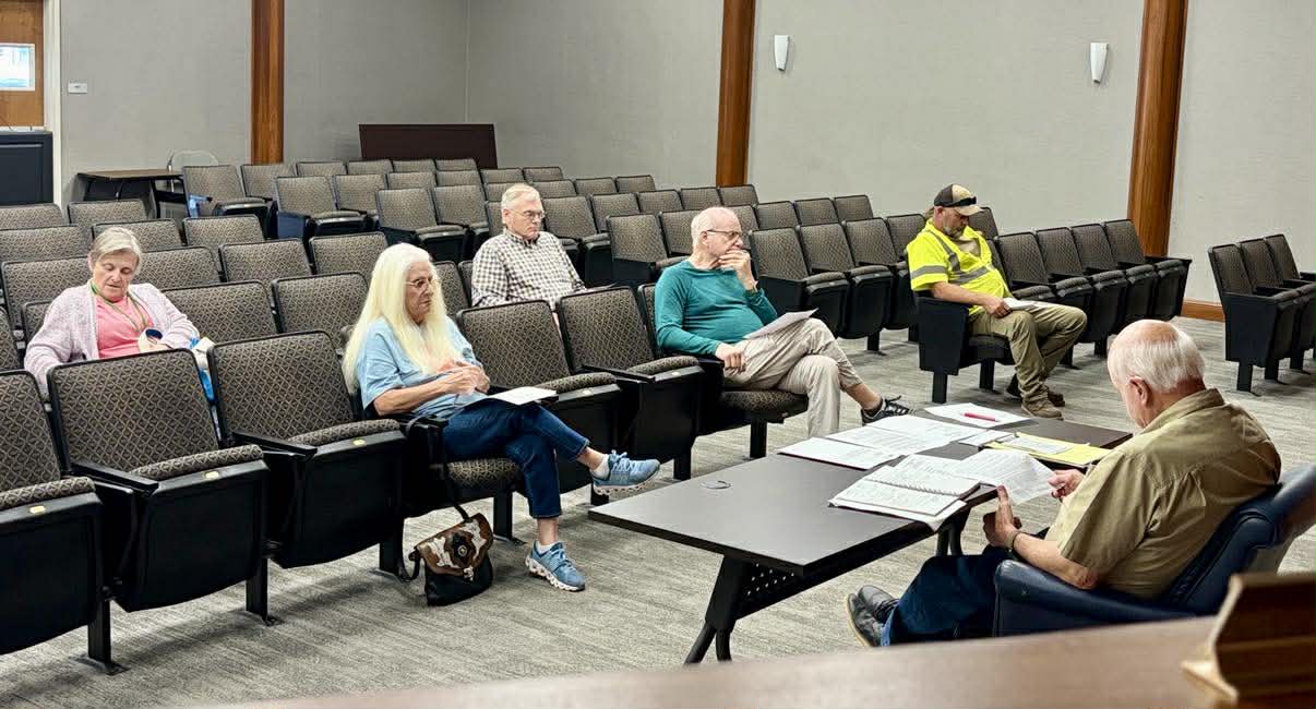 Pictured, L-R: Pat Sharpton, Jan Barnett, Jason Fowler, Rob Werner, Shane Bivins (Arborist), and Chairman Barry Slatton